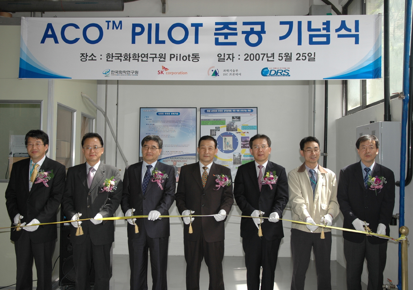 연구원에서는 2007년 5월 25일(금) 3연구동 파일롯 플랜트에서 ACO(Advanced Catalytic Olefins, 차세대 촉매분해 올레핀 제조기술) PILOT 준공식을 가졌다.
