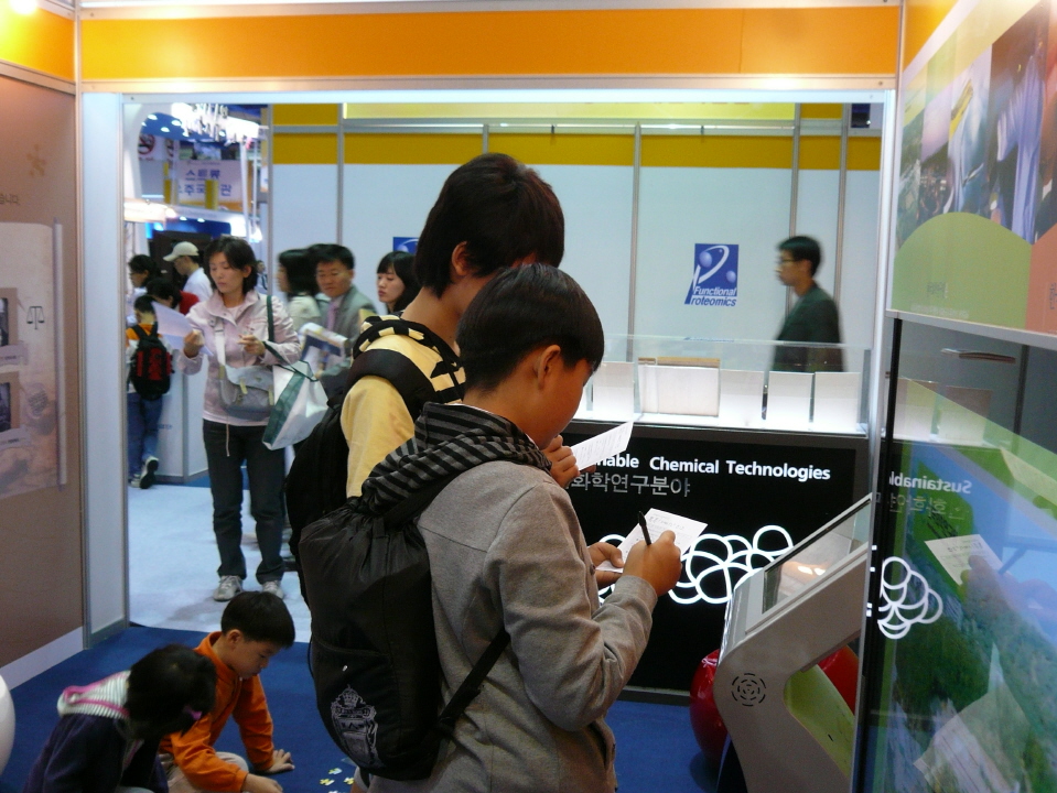 우리 연구원은 웰빙 생명관에서 뇌졸중 치료제 후보물질을 비롯해 카메라 플래시 및 핸드폰 후면에 적용되는 LED조명, 바오촉매를 활용한 친환경 천연도료 등 20여개의 최근 연구성과를 전시했으며, 어린이 방문객을 위한 화학관련 퀴즈프로그램도 진행했다.