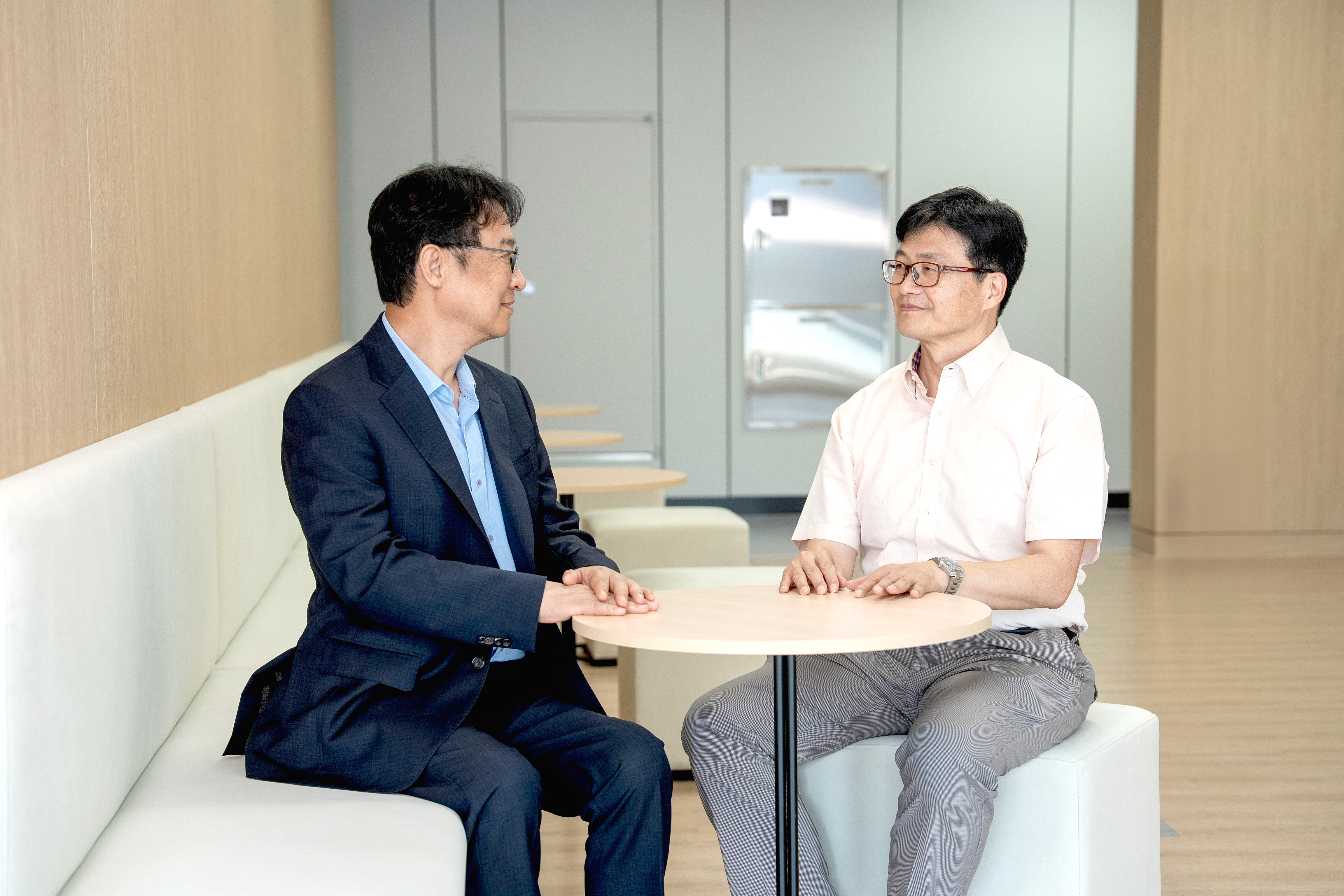 단순한 기술이전을 넘어 친환경 소재의 실용화라는 공동의 철학을 공유하는 파트너 리뉴시스템과의 협업은 화학연이 탄생시킨 합성섬유 재활용 기술의 상용화에 탄력을 더하고 있습니다. 조정모 박사팀과 리뉴시스템은 현재 화학연 상생기술협력센터에 함께 입주해 공동연구를 진행 중입니다. 늘 붙어 있으니 실시간 피드백과 소통이 가능해졌고 기술 개발 속도도 눈에 띄게 빨라졌습니다.
