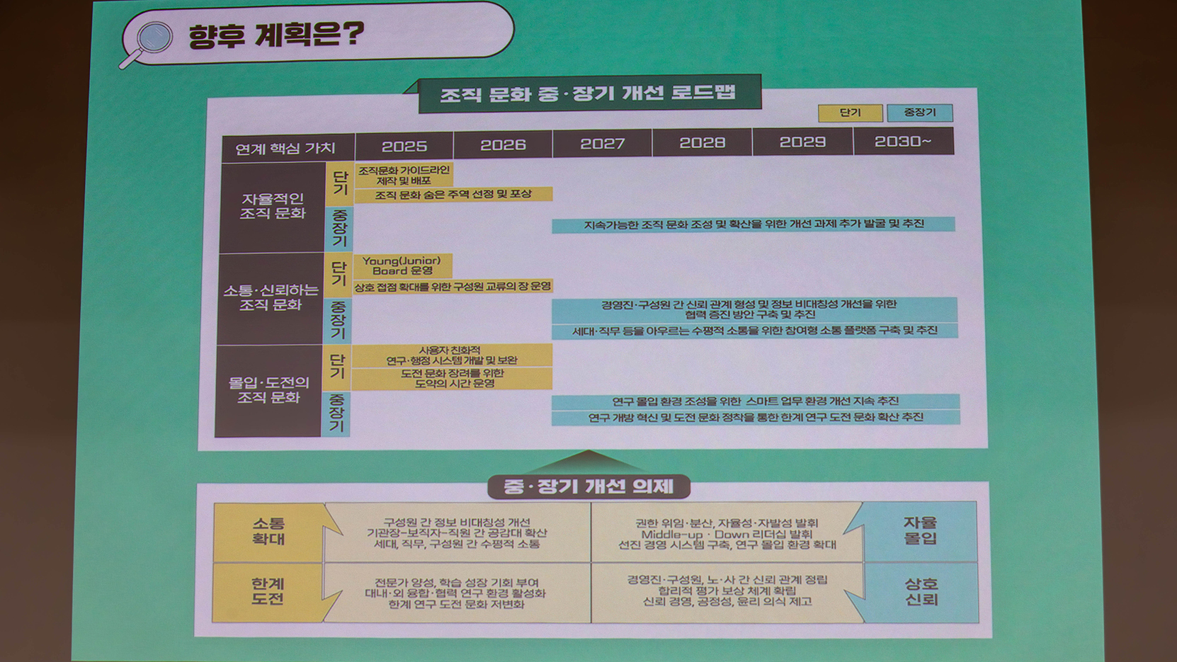 ㅇ내용: 조직 문화 선포식 및 전직원 소통(시니어-신진인력) 토론회 개최