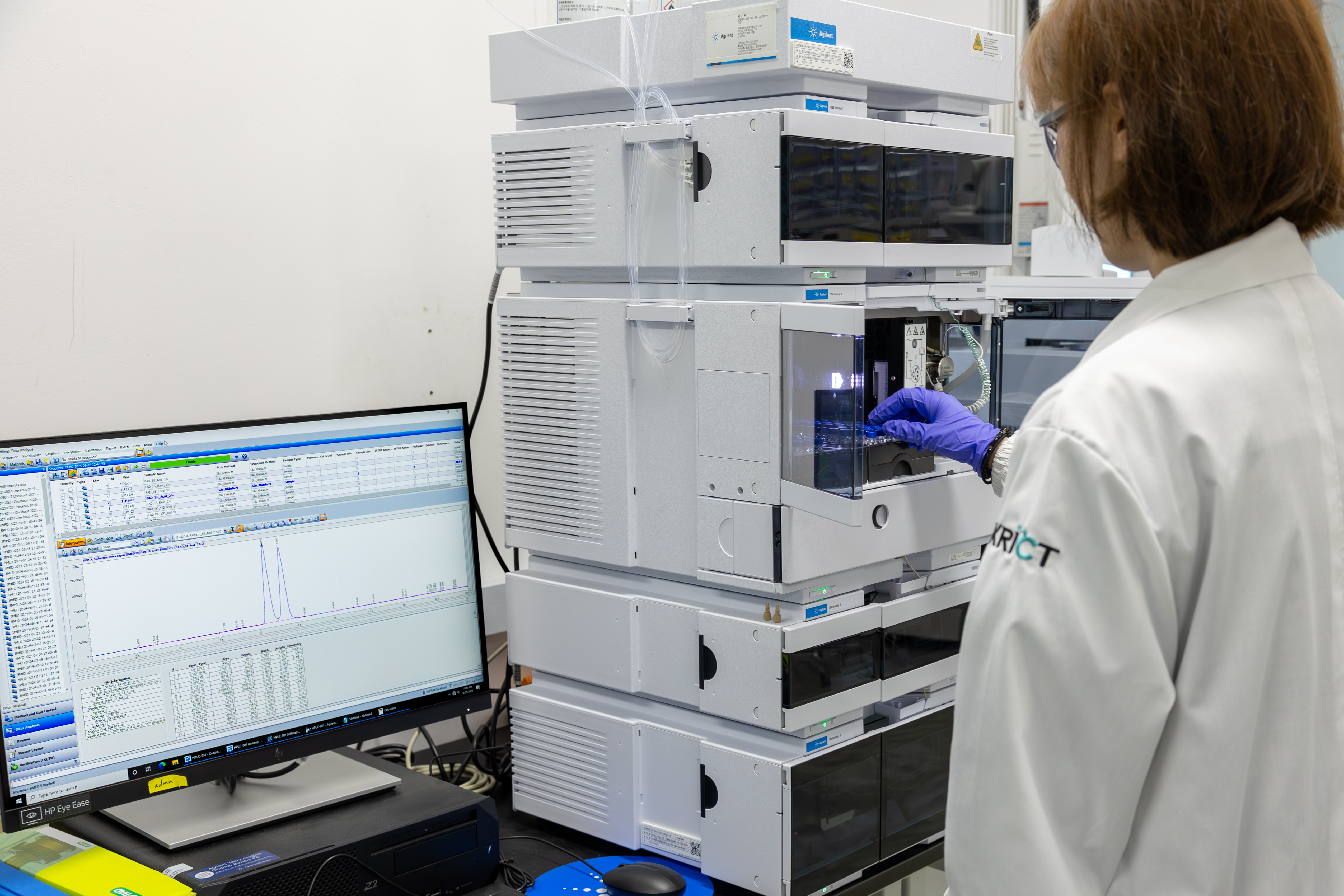 <[그림 7] 노유림 학생연구원이 BMED 장비로 한번에 분리한 후 얻은 자일리톨·자일론산의 순도를 분석하고 있다>