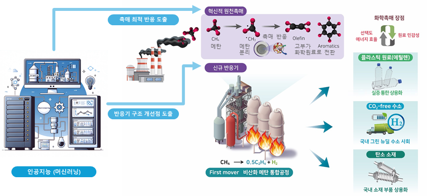 - 인공지능을 통해 촉매/반응기 개선 후, 메탄→에틸렌 전환 0.15kg/day 규모로 1,000시간 실증 완료