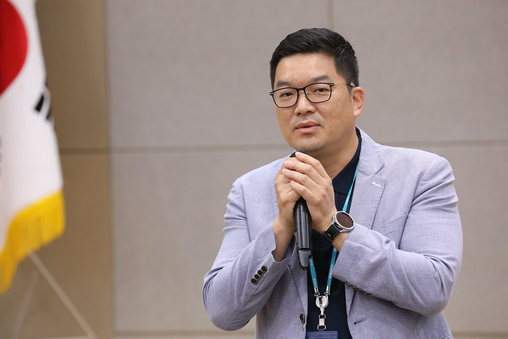 <올해의 KRICT인상을 받은 박인준 책임연구원이 수상 소감을 말하는 모습>