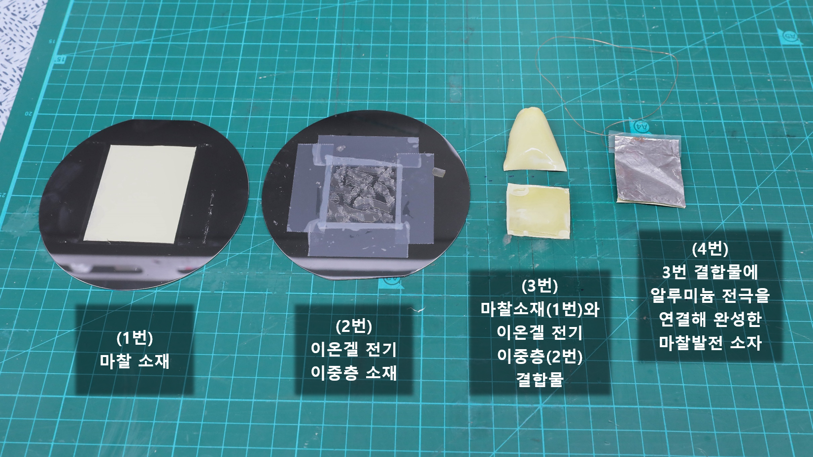 ㅇ 또한 4.7µF(마이크로패럿)의 소용량부터 470µF의 대용량 기기까지 충전시킬 수 있는 성능을 보여주었으며, 오백원 크기의 마찰발전소자 1개는 100개의 소형 LED 전구(전구 1개당 50mW)를 밝힐 만큼 충분한 전원을 공급했다. 그만큼 주변의 다양한 전자기기에 적용할 수 있어 향후 활용 가능성이 높다.