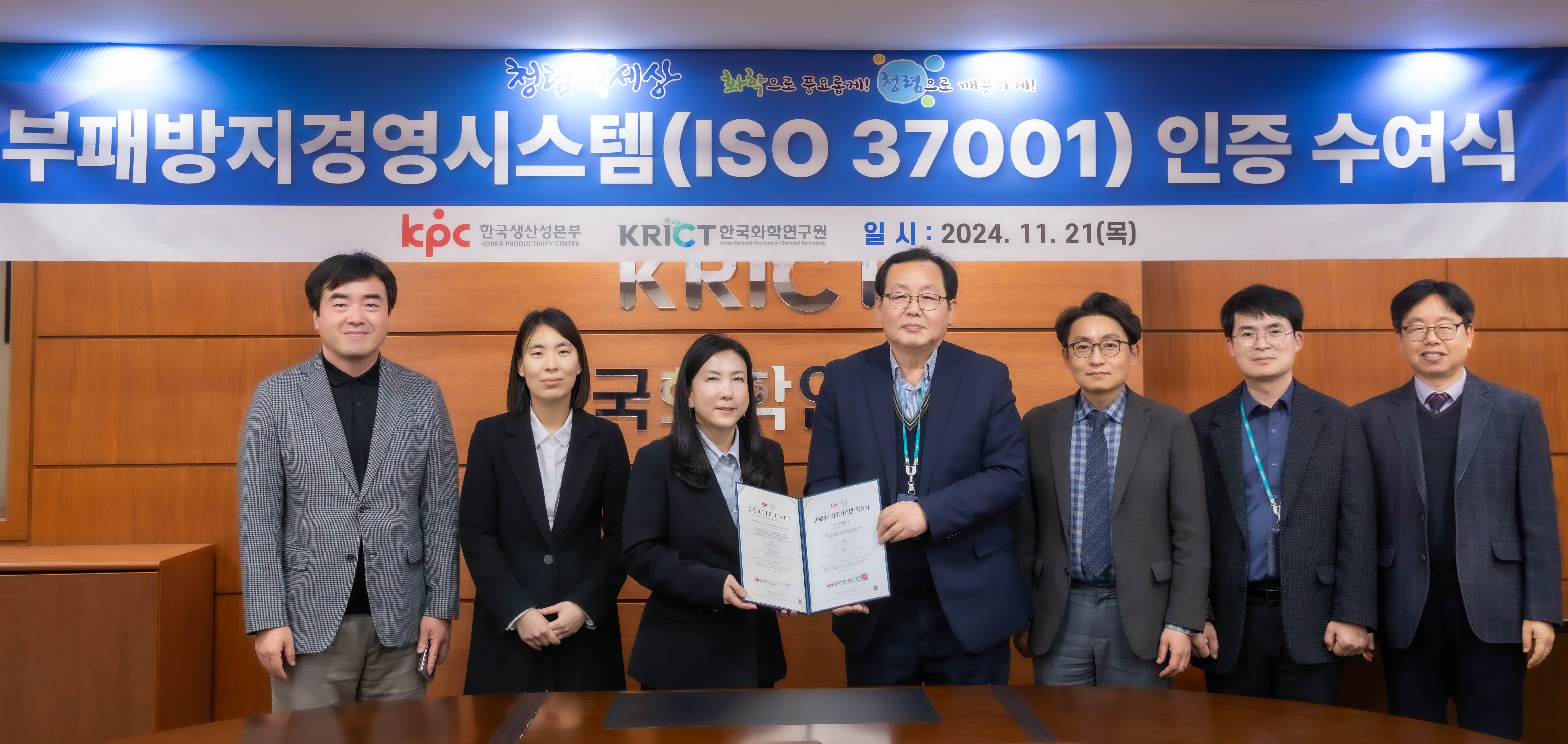 □ 한국화학연구원(원장 이영국)은 한국생산성본부인증원(원장 강장진)으로부터 국제표준 부패방지경영시스템인 ‘ISO 37001’ 인증을 획득했다.
