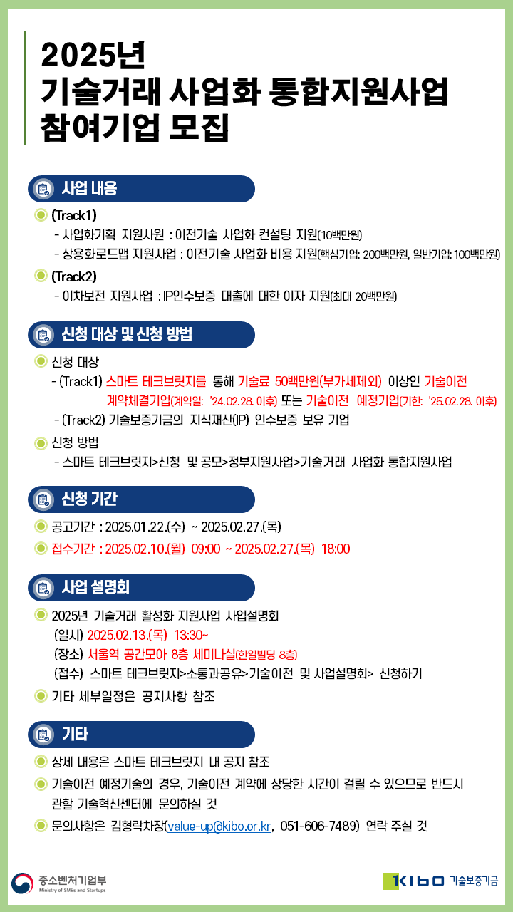 2025년 「중소기업 기술거래 활성화 지원사업」 사업설명회 개최(2.13(목) 13:30~)