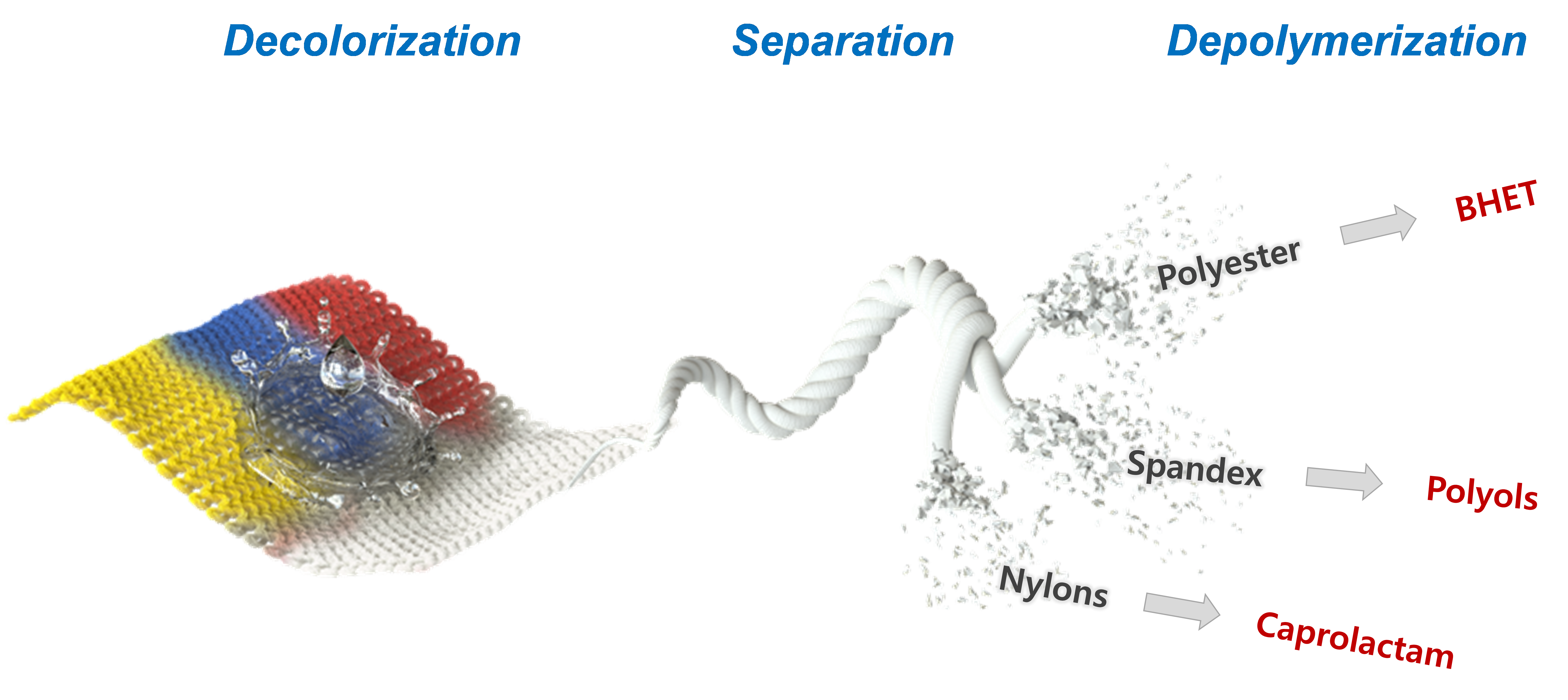 장장 5개월여에 걸친 선별 작업을 통해 최종 선정된 화학연의 3대 국가연구개발우수성과는 ▲폐섬유 화학적 재활용 기술 ▲수전해 및 연료전지 성능향상을 위한 구조 정밀 제어형 고분자 전해질 제조 기술 ▲폐 불소수지 상압 연속식 열분해 단량체 제조 공정 기술입니다. 모두 탄소중립 실현에 없어서는 안 될 핵심기술들이지요.