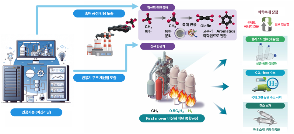 메탄을 이산화탄소 부산물 없이 직접 고부가 화학원료인 에틸렌, 방향족 화합물 등으로 전환하는 화학공정 기술 (인공지능 활용 개선점 도출)