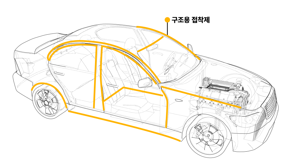 자동차 산업에서는 주로 철강재와 알루미늄의 접합처럼 용접이 어려운 소재들의 결합이나 전장부품의 고정 등 일부에서만 활용되다가 최근 사용 범위가 빠르게 확대되고 있습니다. 점점 강력해지는 환경과 안전규제에 따라 더 높은 에너지 효율과 안전성의 자동차를 개발하는 것이 생존의 문제가 되어가고 있기 때문입니다.