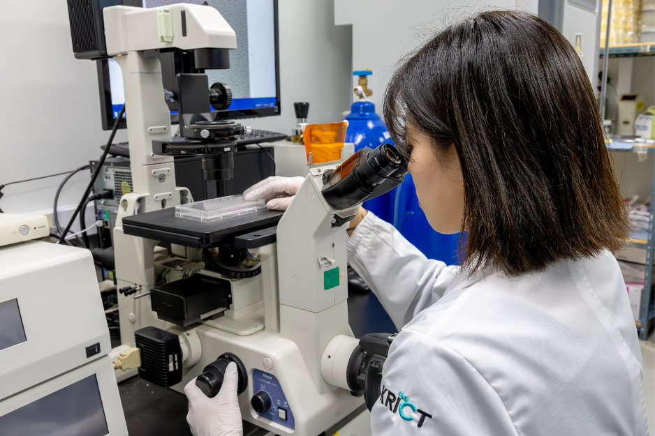 최지우 석사후연구원(1저자)이 대식세포를 살펴보고 있다
