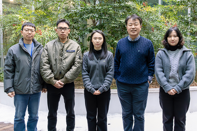 [그림 3] 주요 논문 기여자(오른쪽부터 이유진 연구원(공동저자), 채호정 책임연구원(교신저자), 이수언 연구원(제1저자), Le Thien An 박사후연구원(공동저자), 김영민 선임연구원(공동저자))