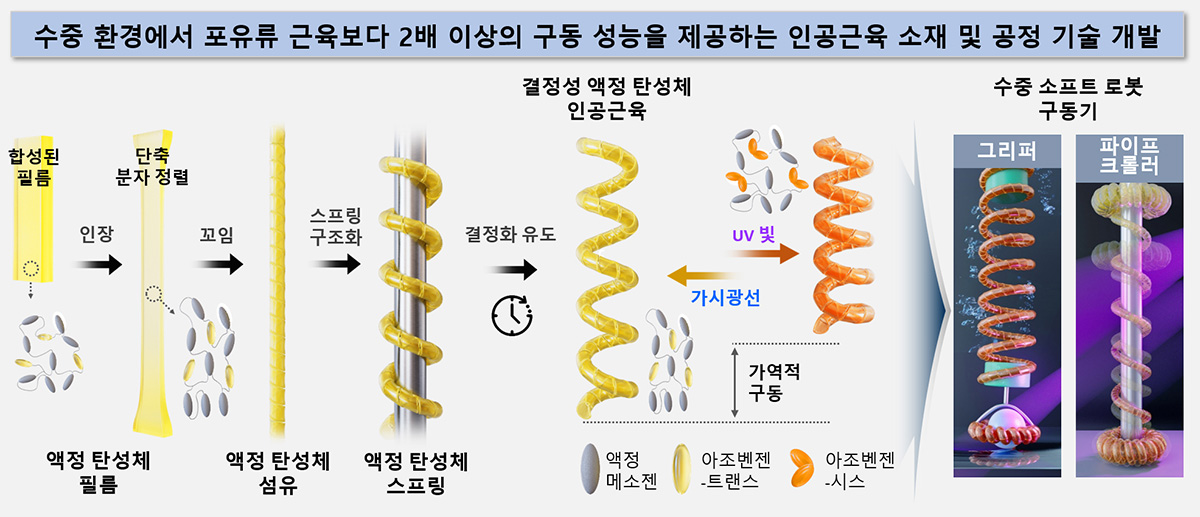 □ 국내 연구진이 물속에서도 자유롭게 작동하는 광(光)화학 기반 소프트 로봇용 인공 근육을 개발했다.