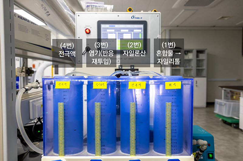신규 촉매와 함께 상온·상압에서 물·수산화칼륨·고농도의 자일로스 용액을 반응시키면 자일론산·자일리톨을 각각 동시에 생산할 수 있다. 특히 이 과정에서 수소 전이 효율 100%를 기록했다. 이는 마치 요리할 때 재료에서 나온 국물을 그대로 다시 요리에 사용한 것처럼, 자일로스 분리 과정에서 나온 수소가 자일리톨을 만드는데 모두 재활용되어, 이론적으로 가장 완벽한 효율을 달성했다는 의미이다.